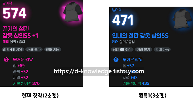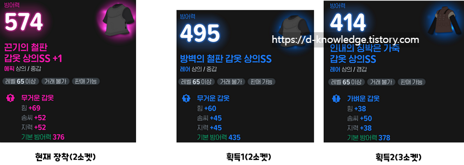 - 획득2: 기본 능력치는 조금 높은 3소켓 장비