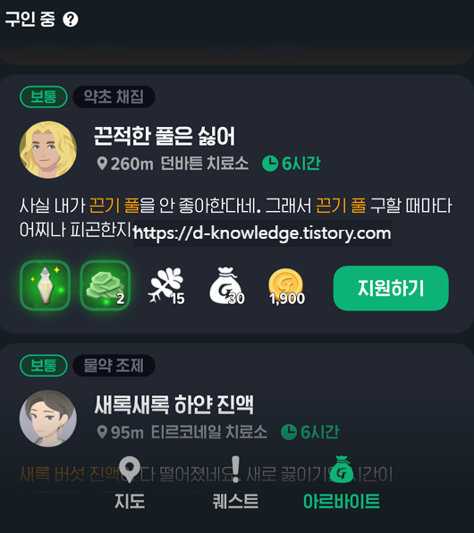 📌 아르바이트는 에린 주민들이 일정 시간 안에 완료해달라고 요청하는 임무입니다.