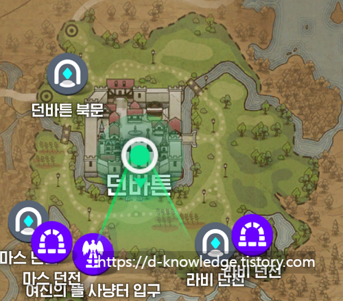 | 던바튼 | 관청 | 에반 | 라비 던전 문게이트 정찰 | 라비 던전 문게이트로 이동하여 주변 수색 |