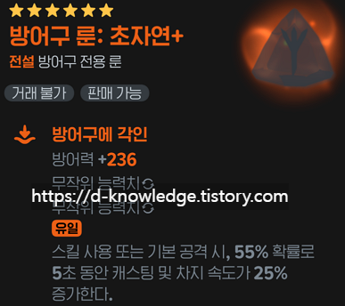 초자연 룬은 스킬 준비 시간인 캐스팅과 차지 속도를 빠르게 만들어줍니다.