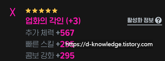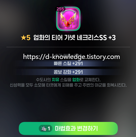 - 효과: 스킬 사용 또는 기본 공격 시, 55% 확률로 5초간 캐스팅 및 차지 속도 25% 증가