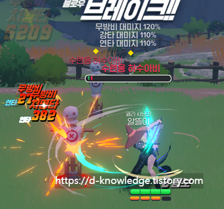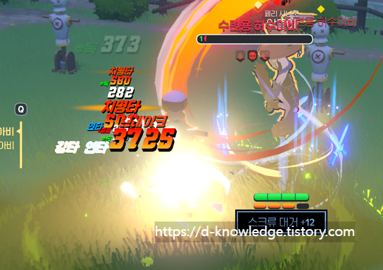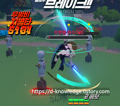 적을 연속으로 베며, 콤보 시스템과 궁합이 좋습니다.