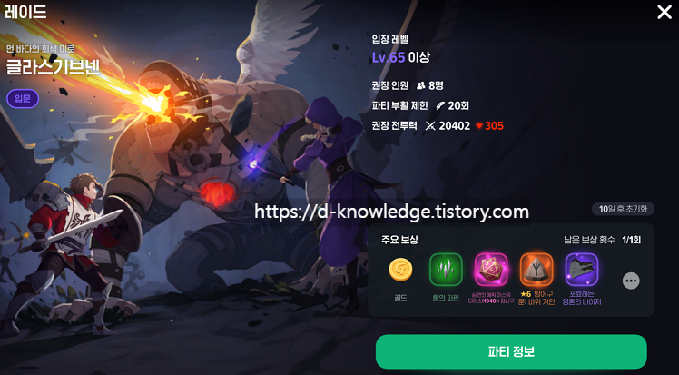 ✨ 파티원이 전투력 20,000 이상이라면 충분히 클리어할 수 있는 수준입니다.