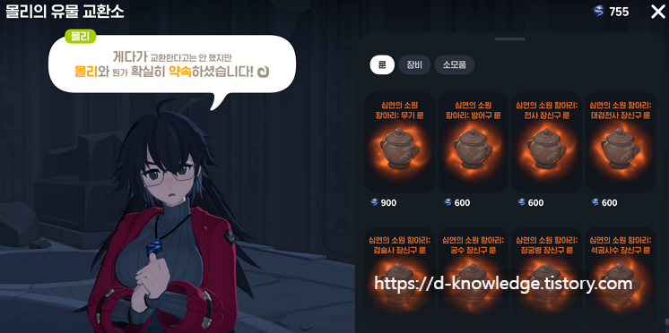 심연의 화석은 마스 던전에 있는 NPC '몰리' 를 통해 교환할 수 있습니다.