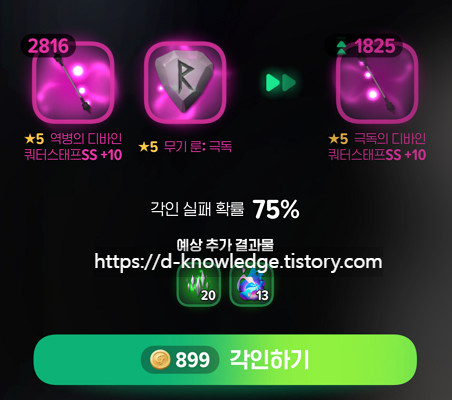 - 14강 에픽 무기에 강화 포인트가 낮은 상태에서 전설 룬을 각인하면, 강화 수치가 1단계 하락할 수 있습니다.