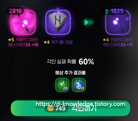 - 특히 13강 이하 에픽 무기의 경우, 강화 포인트를 더욱 많이 확보해야 13강이 유지가 가능합니다.