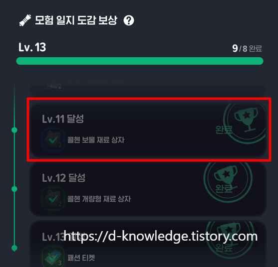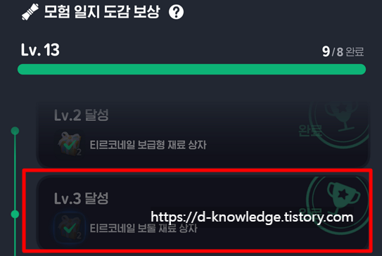 - 도감 → 모험 일지 → 도감 보상으로 이동합니다.