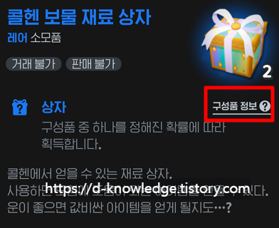 - 콜헨 보물 재료 상자를 선택합니다.