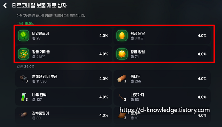 🥚 티르코네일 보물 재료 상자: 황금 달걀, 황금 거미줄