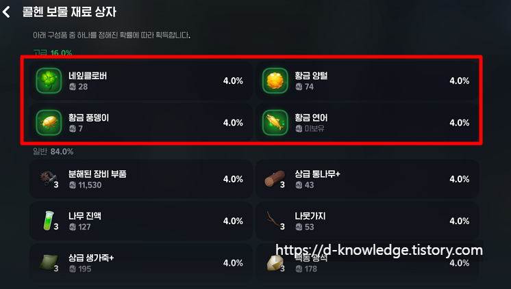 그중에서도 많은 유저들이 주목한 건 바로 ‘보물 재료 상자’입니다.