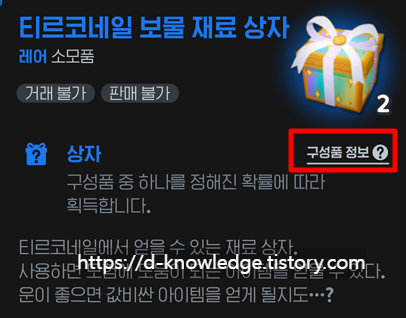 - 티르코네일 보물 재료 상자를 선택합니다.
