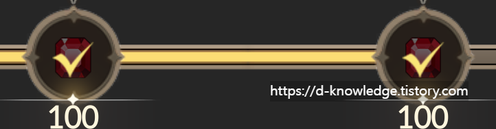 레벨업 시 마다 보상으로 루비 100개씩 보상을 받을 수 있습니다.