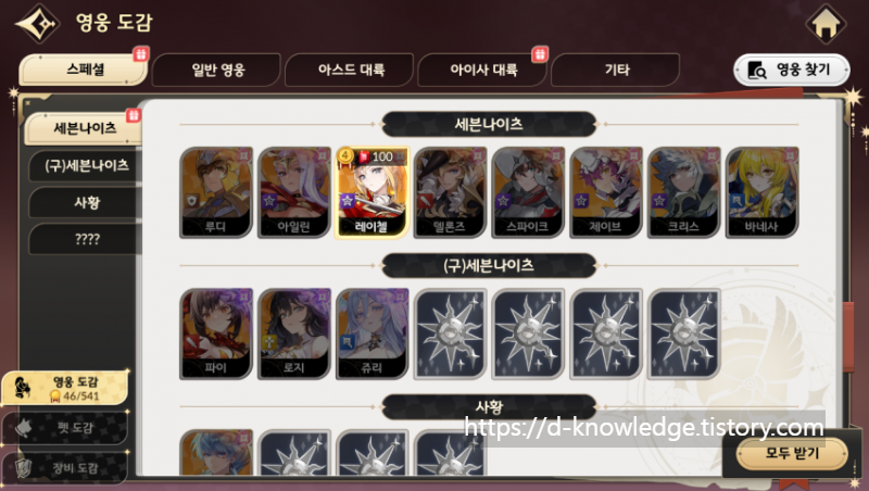 🦸♂️ 새로운 영웅을 획득하면 도감에서 루비 보상을 받을 수 있습니다.