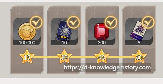👉 이렇게 별을 60개 모으면 영웅 소환 이용권 5장을 보상으로 받을 수 있습니다.
