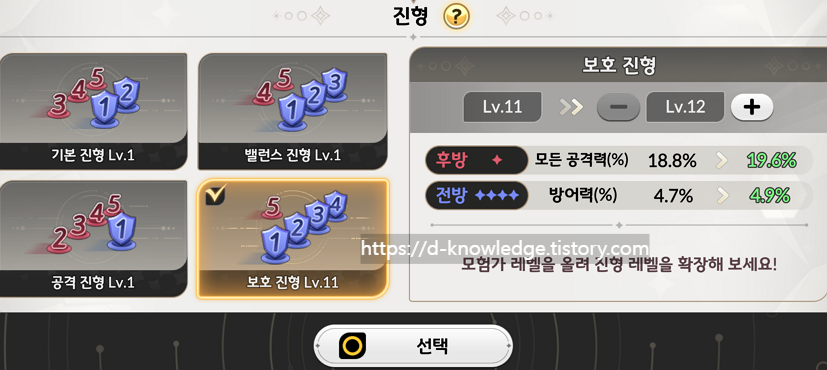 진형 레벨은 모험가 레벨과 동일하게 레벨을 올릴 수 있습니다.