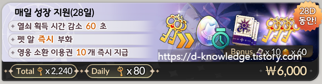 → 열쇠 회복 시간 단축, 펫 알 즉시 부화 등