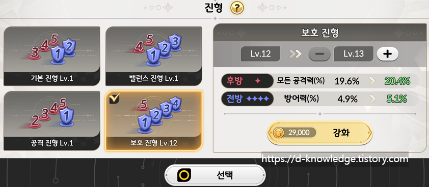 - 보호 진형으로 후방 영웅의 공격력 강화