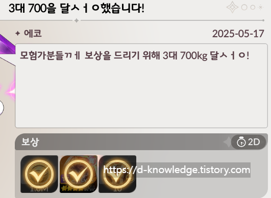 - 레이드 돌파 이벤트(파멸의 눈동자 2 난이도 1 클리어) 보상 획득 가능