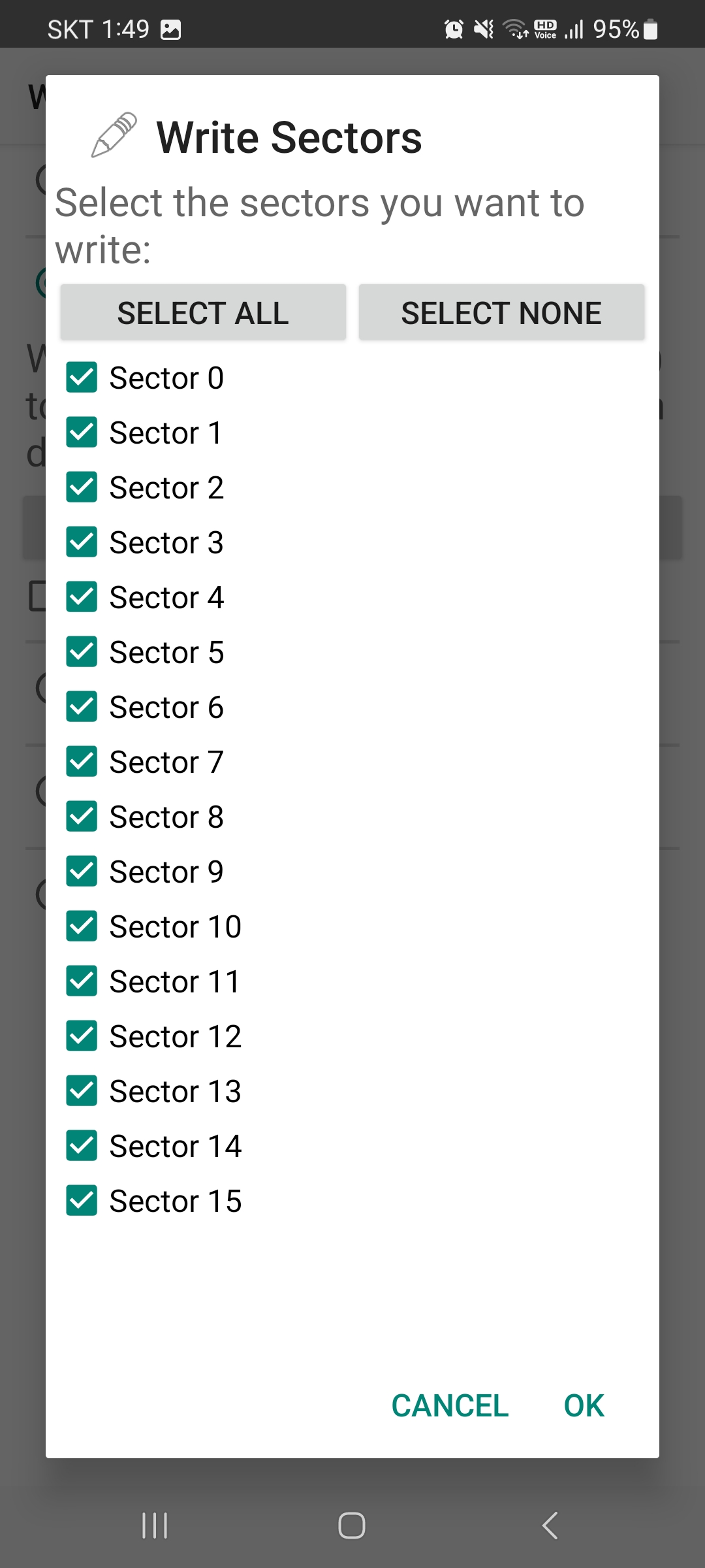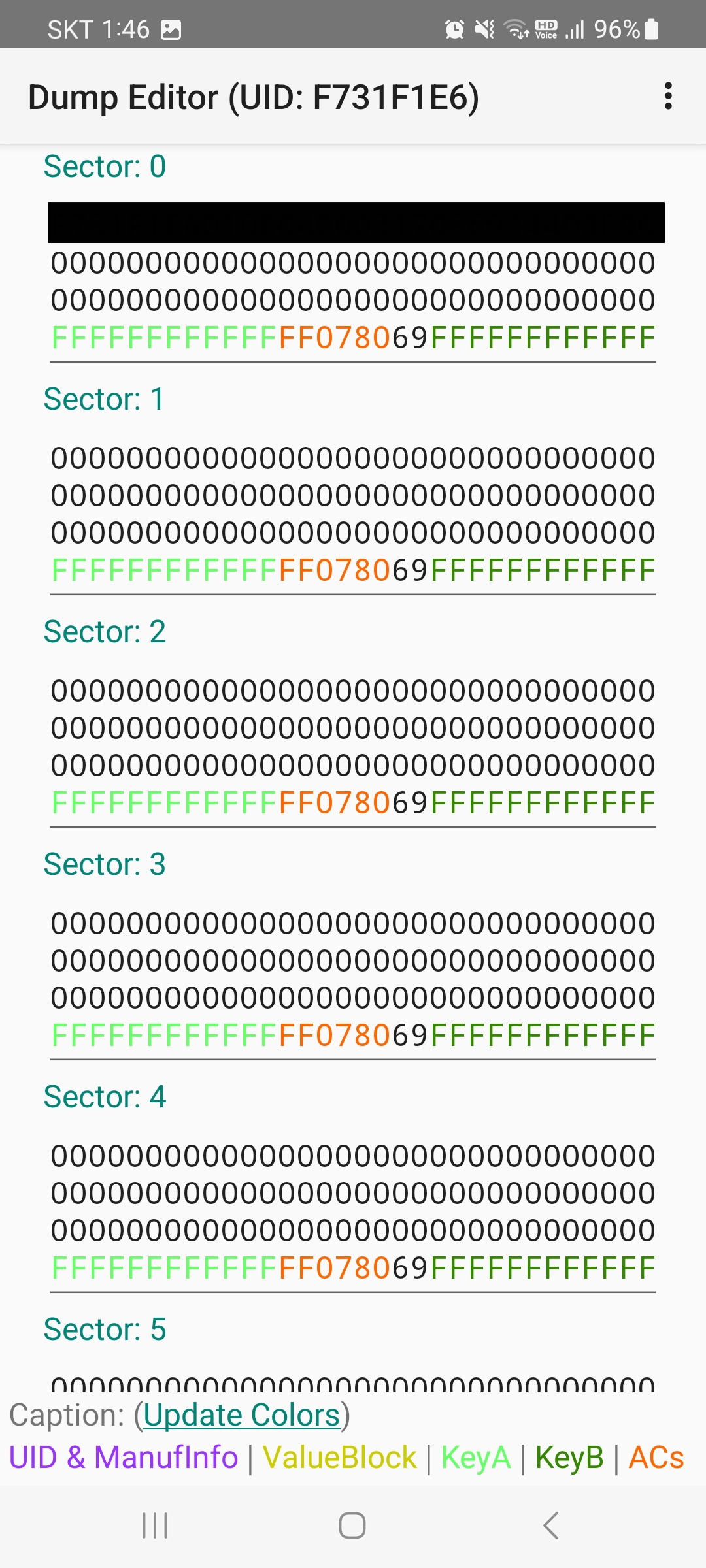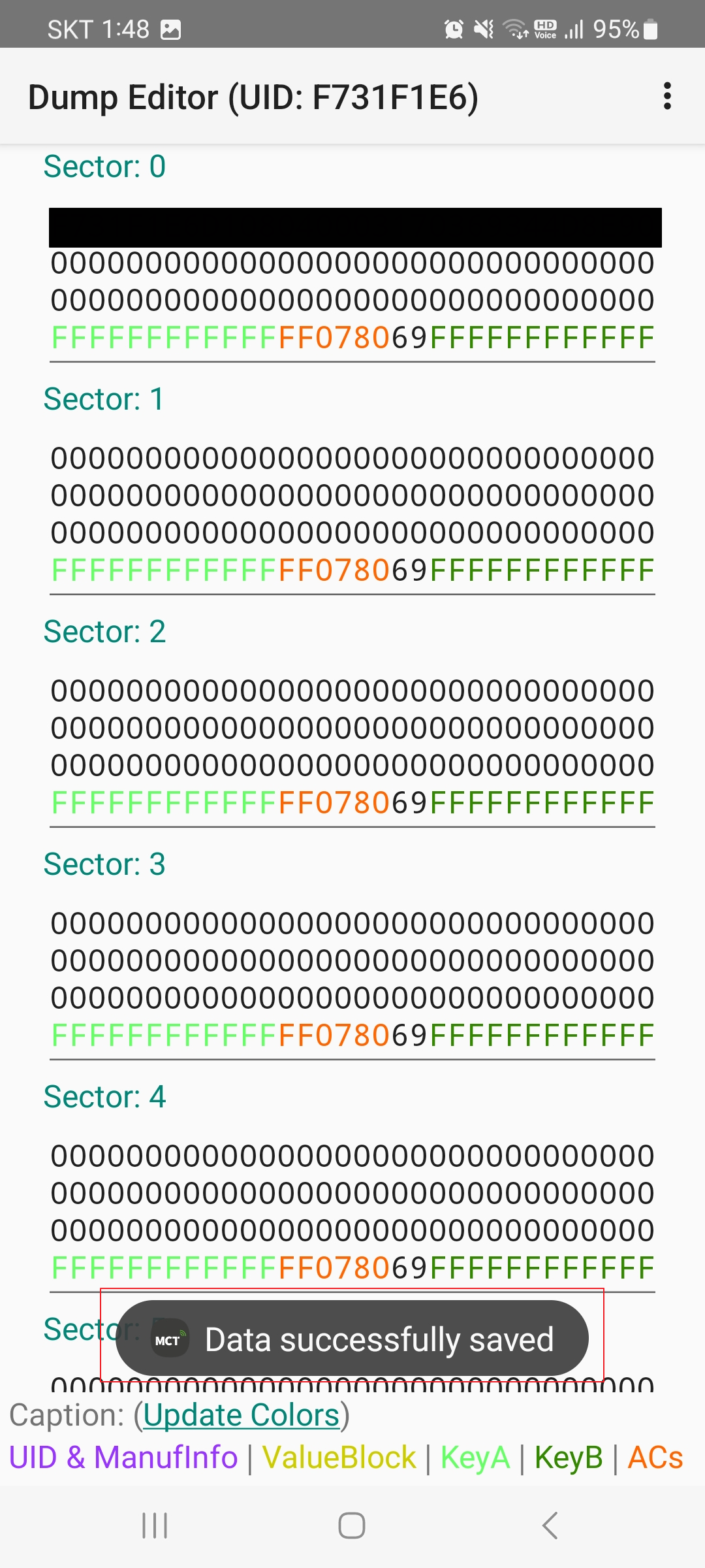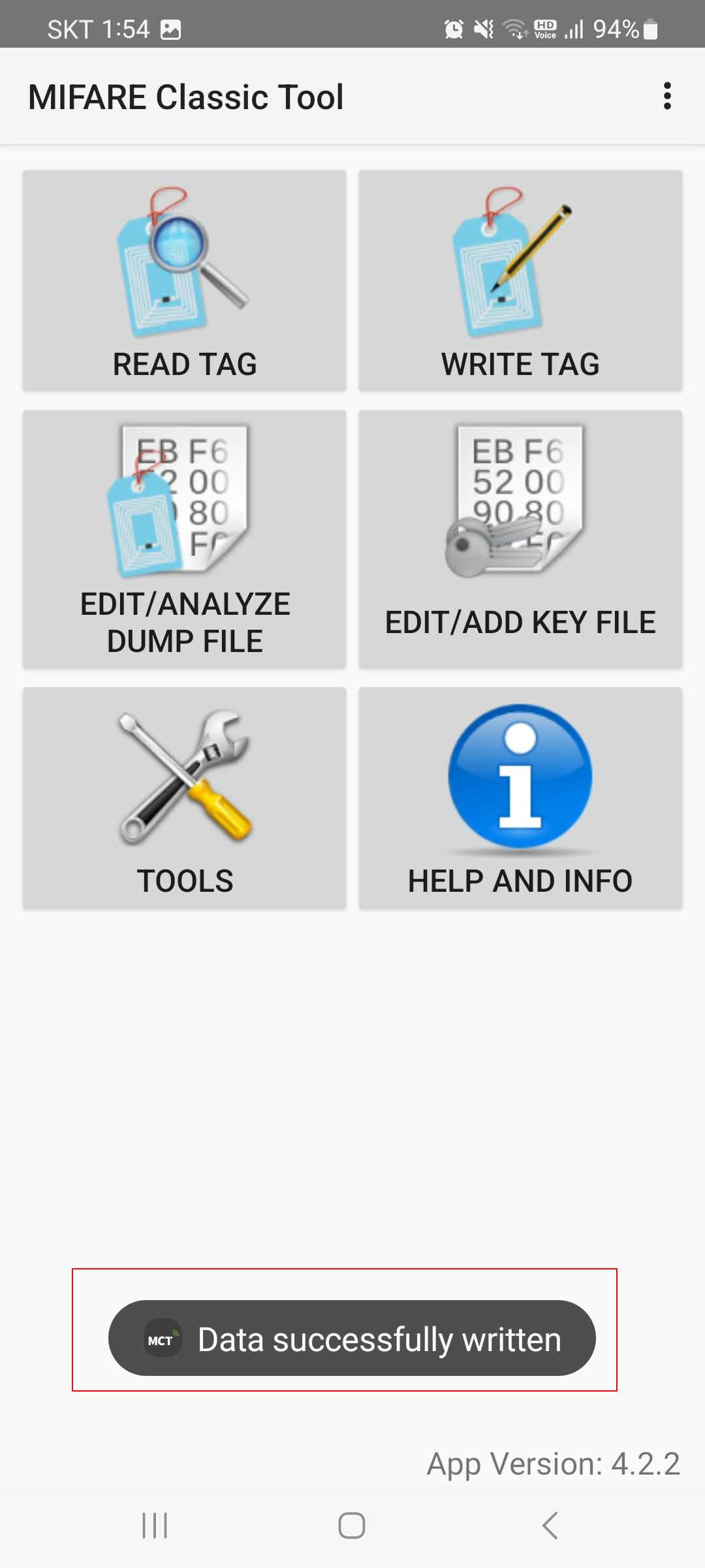 주의사항 어플에서 읽기를 했는데, 데이터가 보이지 않는다면 암호화된 데이터이기 때문에 이 글을 보고는 RFID 태그 스티커로 복제할 수 없다.