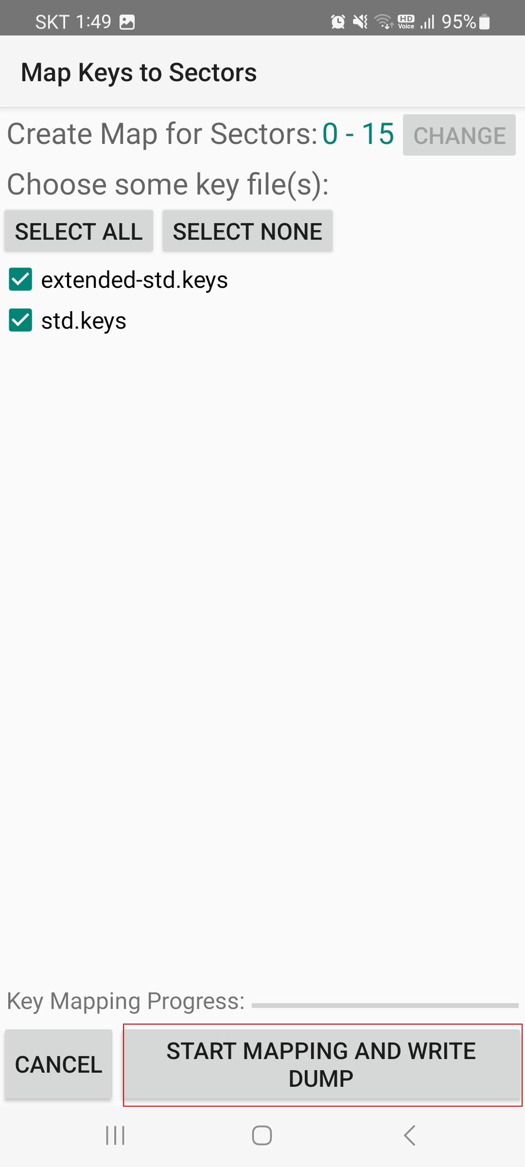 - START MAPPING AND WRITE DUMP를 클릭하자. (체크 박스는 화면과 동일하게 할 것)