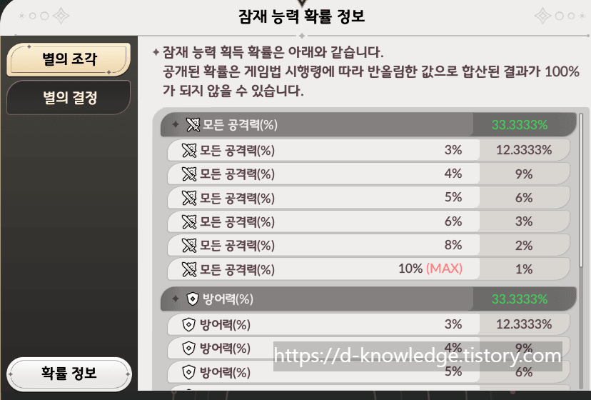 🎯 잠재 능력으로 "모든 공격력 +6%" 옵션을 얻는 것이 가장 이상적이지만, 현실적으로 그 확률은 매우 낮습니다.