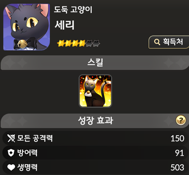 2️⃣ 중기: 도둑 고양이 세리 등 4성 희귀 펫 확보