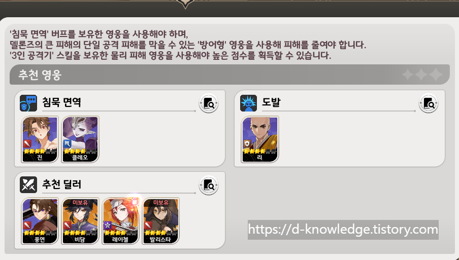 - 최종 추천 : 타카, 풍연, 바네사(2초월 없으면 노호 또는 소이), 리나, 레이첼