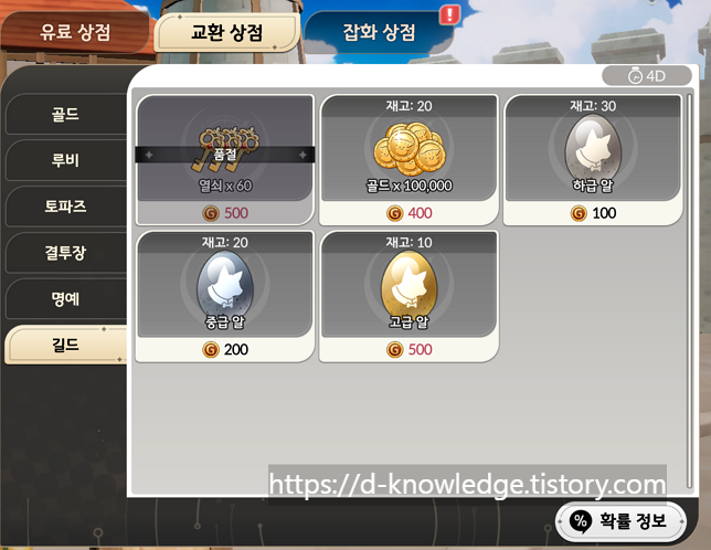 - 길드 주화는 길드 상점에서 유용한 아이템과 교환 가능