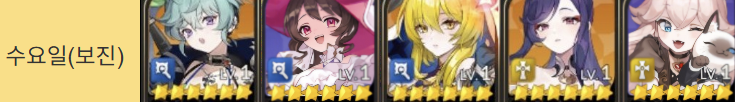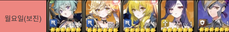 | 요일 | 역할 | 핵심 캐릭터 | 대체 캐릭터 |
