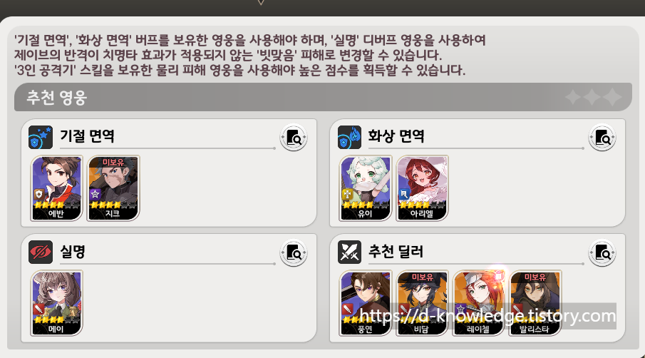 무과금 유저 기준으로 대체 가능한 캐릭터도 함께 소개합니다.
