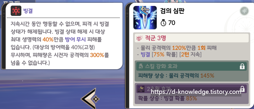 헤브니아의 "검의 심판" 스킬로 빙결이 얼마나 잘 되냐가 중요합니다.