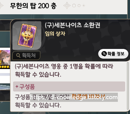 무한의 탑은 층별 전투 콘텐츠로, 200층을 달성하면 구세나 소환권을 보상으로 획득할 수 있습니다.