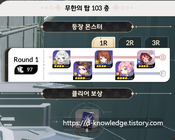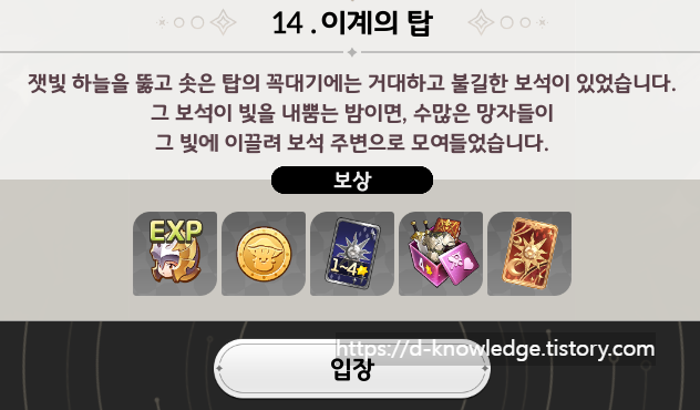 무한의 탑은 단계별로 클리어 보상이 주어지며, 보상 중에 소환권도 포함되어 있습니다.