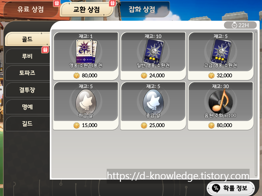 다양한 영웅 소환권이 랜덤으로 판매됩니다. - 오전 9시, 오후 9시, 하루 2회 자동 갱신됩니다.