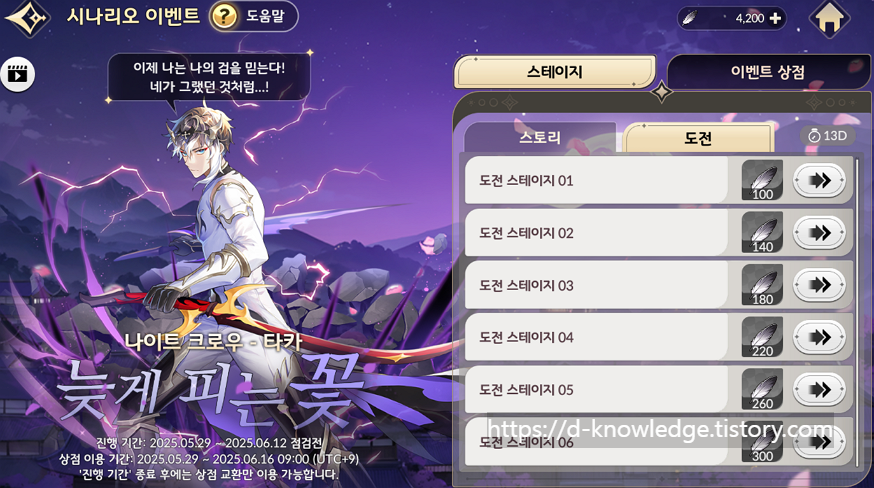 이벤트 메뉴 → 시나리오 이벤트 → 도전 스테이지