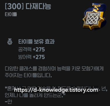 → 도적 계열로 추가 ‘재빠른 발’ 타이틀도 획득 가능