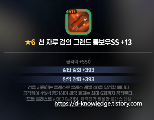 → 천 자루 검 사용 시 검 계열 클래스 레벨 40 추천 - 찬란한 별 (+15 모든 능력치)