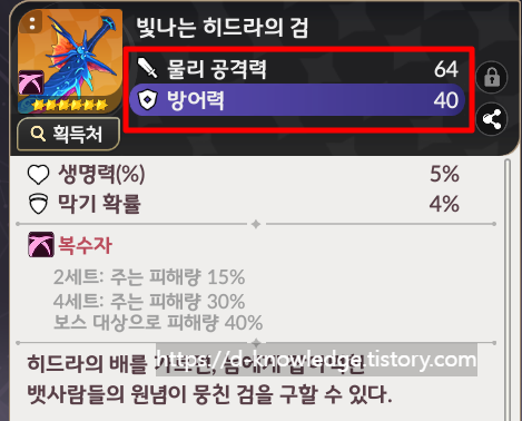기본 능력치는 무기라면 물리 공격력, 방어구라면 방어력 또는 생명력이 해당합니다.