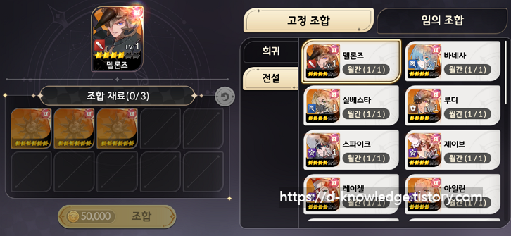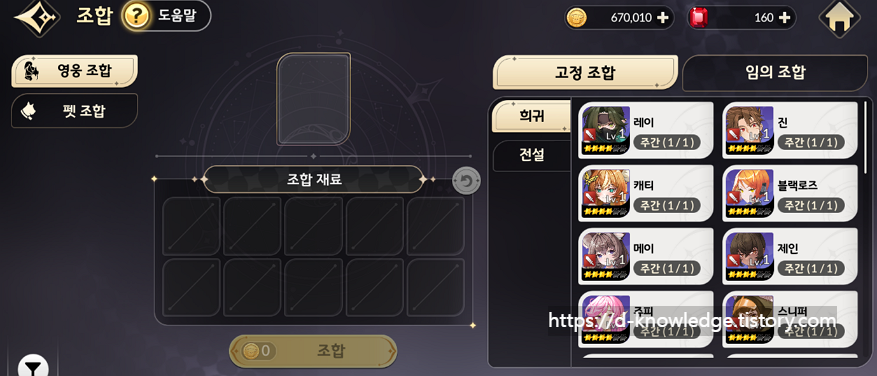 세븐나이츠 리버스에서의 조합 시스템은 3성 영웅 4개를 사용해 4성 희귀 영웅 1명을 얻는 기능입니다.