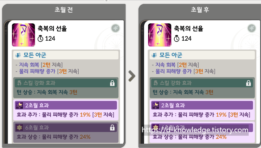 - 예시: 유이는 2초월 시 회복 + 물리 공격력 증가 버프 효과 추가