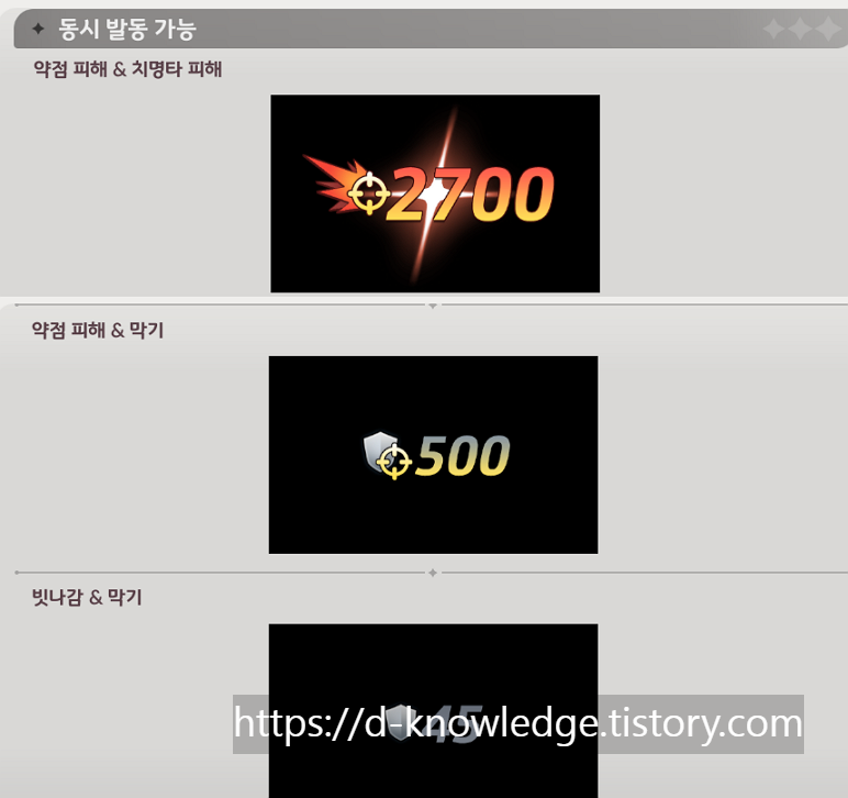 피해 타입에 따라 다른 피해 타입과 동시에 발동 되는 경우가 존재 합니다.