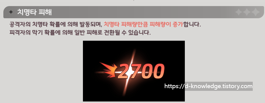 중요 포인트는, 치명타 데미지가 아무리 높아도 치명타가 발생해야 적용된다는 점입니다.