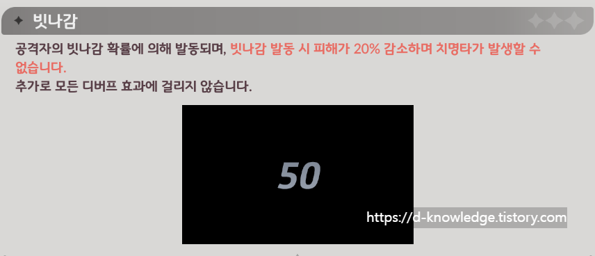 빗나감은 공격이 일부 무효화되는 회피 효과입니다.