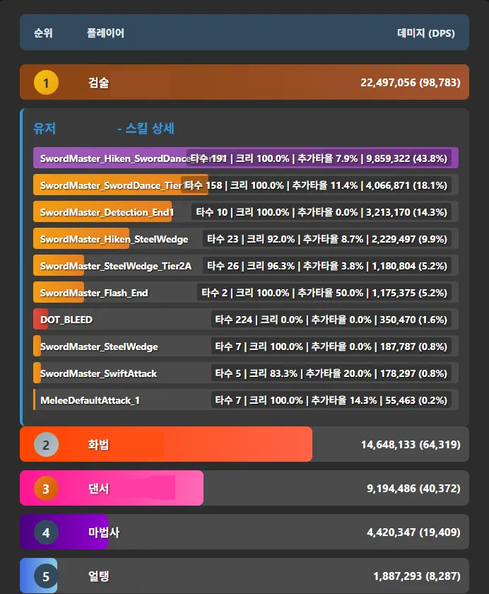 레이드나 보스전에서 누가 얼마나 기여했는지를 확인할 수 있는 기능이죠.