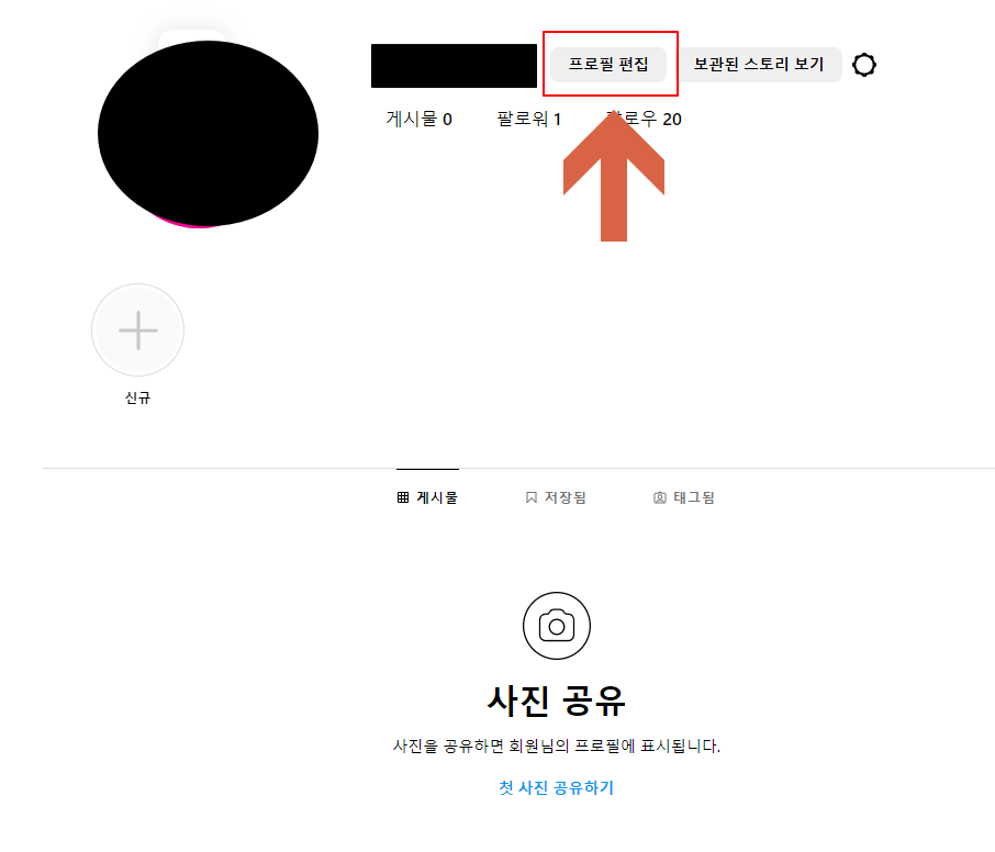 상단에 "프로필 편집" 버튼을 클릭한다.