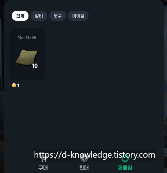✅ 재매입은 상점이 있는 NPC를 통해서만 가능합니다.
