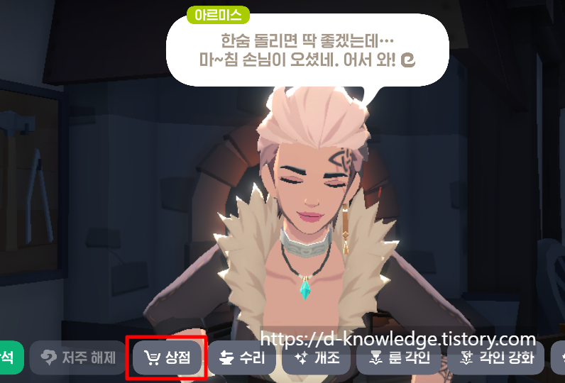 2️⃣ 상점 기능이 있는 NPC에게 말을 걸어 상점을 엽니다.