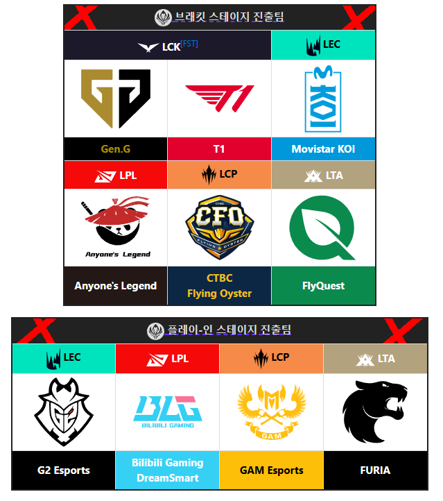 | 한국 (LCK) | Gen.G (1시드), T1 (2시드) |