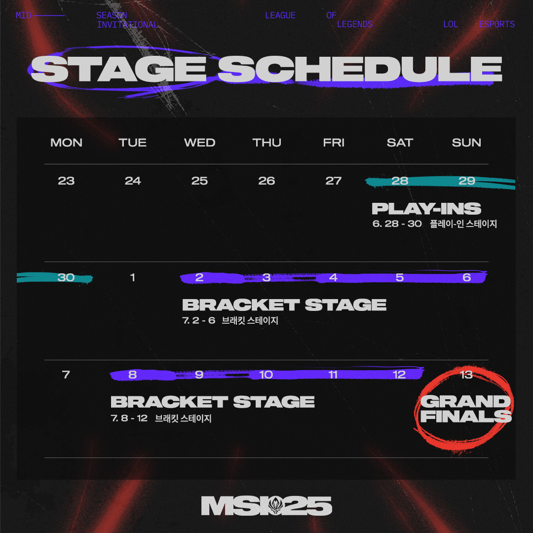 2025 MSI는 아래 2단계 스테이지로 나뉘어 진행됩니다.