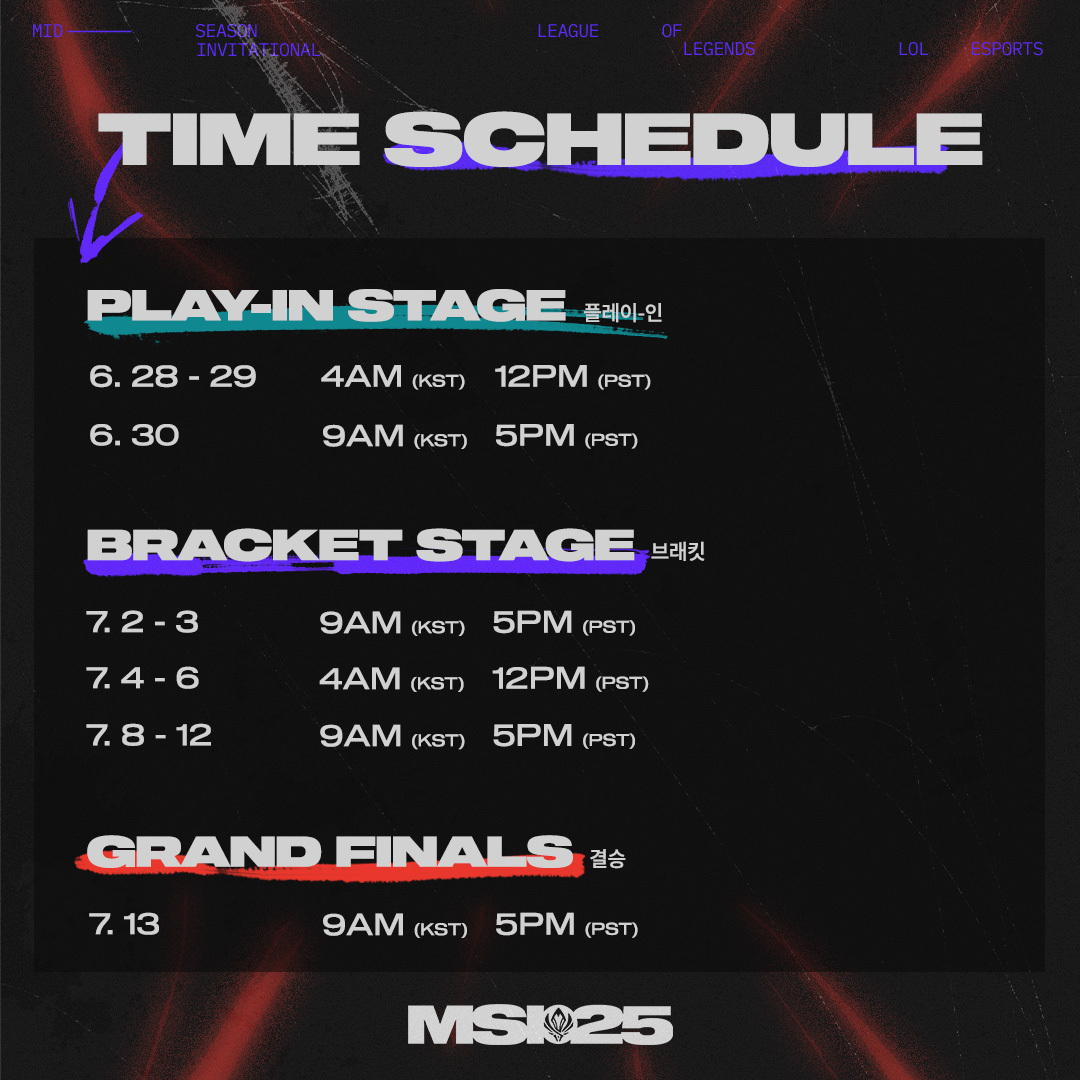 🗓️ 한국 시간 기준 MSI 2025 일정표